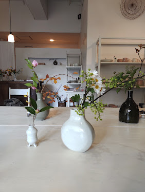 今日は、砥部焼の陶芸家 宮内太史さんの個展中WS「花生けとお菓子の会」に参加してきました。