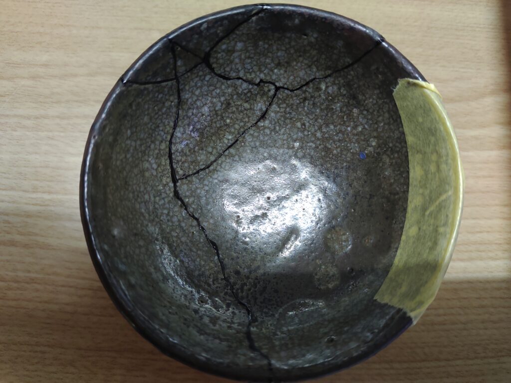 器が黒っぽいので、どこに黒漆の線を引いたか